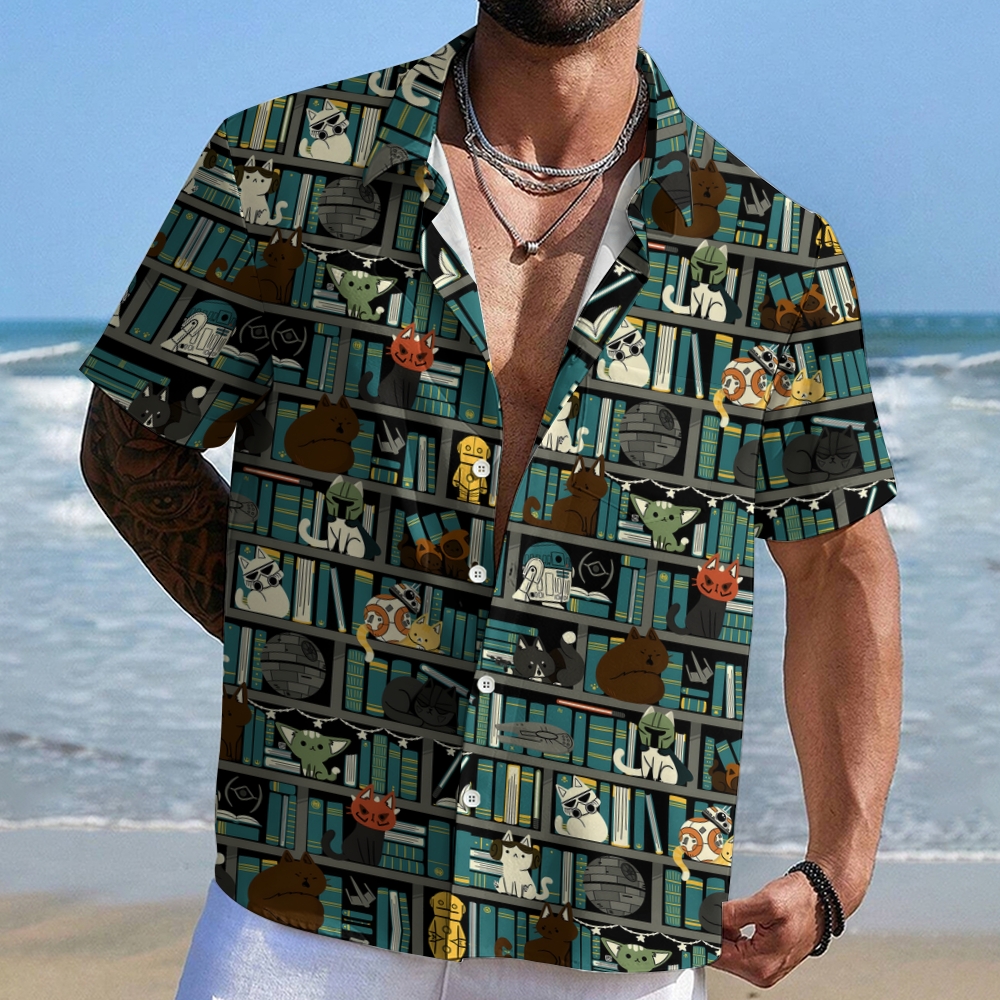 Star Battle Books cat Geek Hawaiian Shirt
